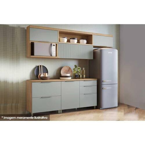 Cozinha Completa Completa Marquesa 5 Peças Nature/Verde - Nesher Abaixo segue os produtos do KIT: Cozinha Completa Completa Marquesa 5 Peças Nature/Verde - Nesher Balcão de Cozinha Marquesa 1 Porta e 3 Gaveta c/ Tampo 120cm Nature/Verde - Nesher