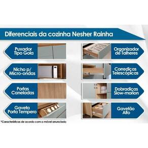 Imagens Meramente Ilustrativas. Não nos responsabilizamos pela montagem/instalação dos produtos. Todas as informações divulgadas são de responsabilidade exclusiva do fabricante/fornecedor. Tipo de Estrutura do Móvel: 100% MDF | Quantidade de Portas: 10 Portas de Abrir | Quantidade de Gavetas: 14 Gavetas | Quantidade de Prateleiras: 5 Prateleiras | Certificação de Qualidade de Móveis: Qualidade Aprovada | Tipo de Pintura: UV | Quantidade de nichos: 1 nicho | Características de móveis: Gabinete Cooktop | Diferenciais da Gaveta: c/ Corrediças Telescópicas | Diferenciais dos Nichos: Nicho p/ Microondas | Tipo de Acabamento da Pintura: Fosca | Tipo de puxador: Alumínio Escovado | Certificação de Qualidade: Qualidade Aprovada | Garantia 3 Meses: 3 | ID Loja Oficial MELI: 1557 | Garantia de Fábrica: Garantia de Fábrica | Material da Estrutura: MDF | Com gavetas: Sim | Com portas: Sim | Possui Nichos: Sim | É kit: Não | Requer montagem: Sim | Inclui manual de instruções: Sim | Inclui kit de instalação: Sim | Tipo de Puxador: Alumínio | Inclui Tampo: Sim | Origem: Nacional | Tipo de Corrediça: Metálicas | Tipo de Dobradiça: Metálicas | Material do Tampo: MDF | Possui Puxador: Sim | Com Prateleiras Ajustáveis: Não | Inclui pia: Não | Com pés: Sim | Ambiente Indicado: Salas | Material: Madeira | Material das portas: MDF | Tempo de montagem: 1 h | Fonte do produto: N/A | Acabamento: N/A | Cor dos pés: Ciano | Material das corrediças: Metal | Tipo de móveis de cozinha: Armário/Balcão | Material da tampa: Madeira | Material da base: Madeira | Materiais do corpo: Melamina | Alto do armário: N/A | Alto do balcão: N/A | Ancho do armário: N/A | Ancho do balcão: N/A | Capacidade máxima de pessoas: N/A | Modelo detalhado: N/A | Condição do item: | Produto: N/A | Cômodo Indicado: Multiuso | Quantidade de gavetas: 0 | Código universal de produto (GTIN): 7899766214485 | Condição do Item: | Link Site: https://www.costaricacolchoes.com.br/produtos.asp?produto=41894 | Numeral: 0 | Não se Aplica: N/A | Não Possui: Não | Linha/Modelo: rainha | Cor Cnova: Blush | Cor Meli: Ciano | Categoria Trilha: Móveis de Cozinha> Cozinha Completa | Categoria - Sub: Cozinha Completa | Categoria - Pai: Móveis de Cozinha | Comnto Embalagem: 223.50 | Largura Embalagem: 51.50 | Altura Embalagem: 8.00 | Peso: 433.32 Kg | Kit: 1 | Peso Real Kg: 433.32 | Peso Cubado: 235.00 | Volumes: 14 | M3: 0.94 | Comnto/Profundidade: 0 cm | Largura: 340 cm | Altura: 228 cm | Tamanho Montado: Larg:340.00 x Comp/Prof:0.00 x Alt: 228.00 | Comnto/Profundidade Montado: 0.00 | Largura Montado: 340.00 | Altura Montado: 228.00 | Cor Fabricante: Cor Nature/Verde | Data Cadastro: 2023-8-26 9:26:11 | Sigla Estoque: 2 | Marca: Nesher