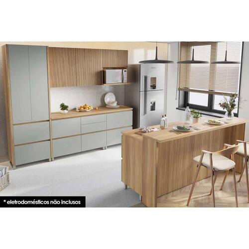 Cozinha Completa Completa Rainha Gourmet 8 Peças Nature/Verde - Nesher Abaixo segue os produtos que compoem o KIT: - Paneleiro de Cozinha Rainha c/ 2 Portas e 2 Gavetas 70cm Nature/Verde - Nesher - 1 unidades Dimensões: Alt: 228cm x Larg70cm x Comp/Profund:70cm
