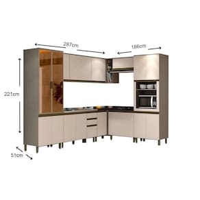Cozinha Completa Connect 11 Peças (4 Armários + 4 Balcões + 1 Paneleiro + 2 Complementos) C11P01 Duna/Cristal - Henn