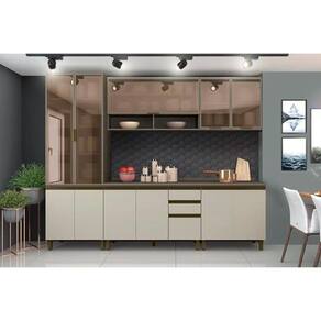Cozinha Completa Connect 7 Peças (2Armários+2Balcões+1Paneleiro+2Complementos) C7P03 Duna/Cristal - Henn