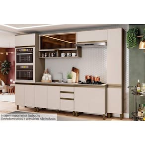 Cozinha Completa Connect 8 Peças (2 Armários + 2 Balcões + 2 Paneleiros + 2 Complementos) C8P12 Duna/Cristal - Henn