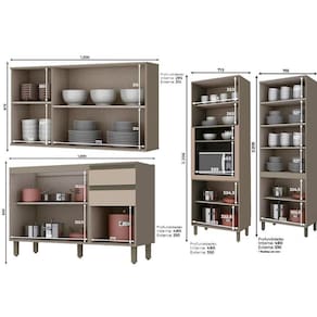 Cozinha Completa Connect 9 Peças (3 Armários + 2 Balcões + 2 Paneleiros + 2 Complementos) C9P01 Duna/Cristal - Henn