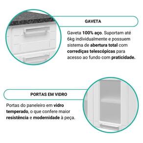 BALCÃO DE COZINHA 3 PORTAS 2 GAVETAS 6114 BERTOLINI BRANCO