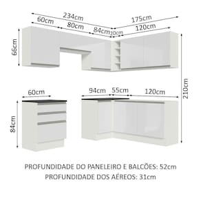 - 52 cm de profundidade nos balcões e 31 cm nos aéreos