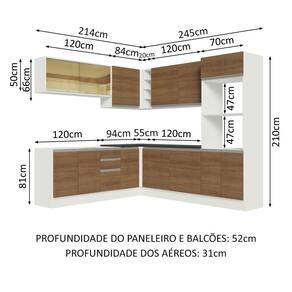 - 52 cm de profundidade nos balcões e 31 cm nos aéreos