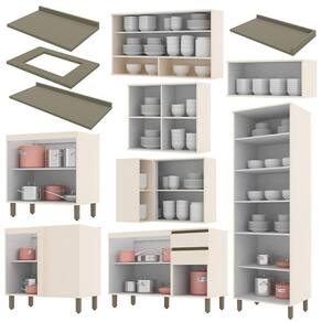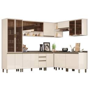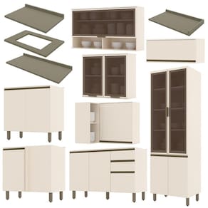 Cozinha Completa de Canto 9 Peças Connect com Cristaleira e Aéreo Vidro - Móveis Henn