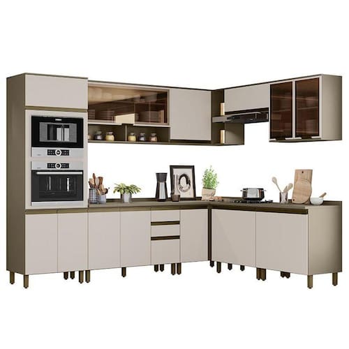 Cozinha Completa de Canto 9 Peças Connect com Torre Quente e Aéreo Vidro - Móveis Henn