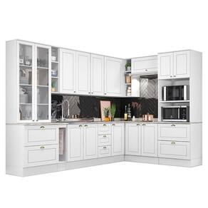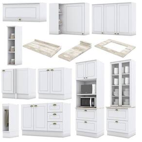 Cozinha Completa De Canto Americana 10 Peças Com Cristaleira Branco - Móveis Henn Branco