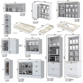 Espaço para eletrodoméstico: 1- 42,4 x 68,4 x 48,0 cm e 2- 38,6 x 68,4 x 53,3 cm