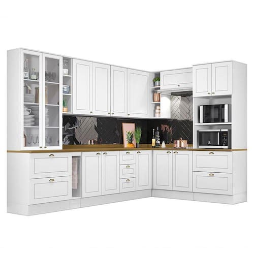 Cozinha Completa de Canto Americana 10 Peças Tampo Nature - Móveis Henn