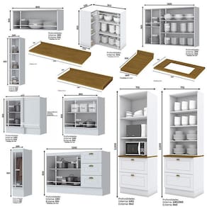 Espaço para eletrodoméstico: 1- 42,4 x 68,4 x 48,0 cm e 2- 38,6 x 68,4 x 53,3 cm