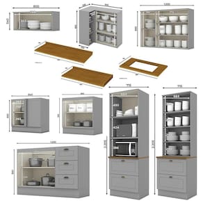 Para mais informações, acesse nossa Central de . Tonalidade: Cinza | Produto: Cozinha Modulada | Tipo de móveis de cozinha: Armário Cor: Cinza