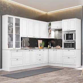 Com design contemporâneo, a Cozinha Americana embeleza qualquer ambiente. Seu conceito é inspirado nas clássicas cozinhas estilo americano, oferecendo uma decoração moderna e minimalista. Ela conta com puxadores em metal zamac, dobradiças 35mm com amortecimento e espaçosos aéreos com 83cm de altura, proporcionando praticidade e funcionalidade. É um armário de cozinha 100% MDF com mais de 15 módulos, que possibilitam criar o projeto de cozinha dos seus sonhos.