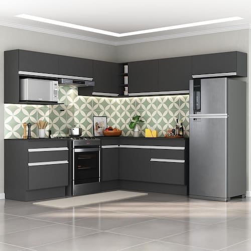 O Armário de Cozinha Completa de Canto com Rodapé Veneza Multimóveis V2106 tem um excelente custo benefício e um amplo espaço interno. Produzido em MDP com acabamento acetinado (cerca de 20% de brilho), que garante maior durabilidade e resistência, possui corrediças metálicas (mais leveza no manuseio), rodapés, que deixam o ambiente mais estiloso, puxadores em ABS e tampo em MDP 15mm com pintura de alta resistência. Os módulos de canto podem ser montados dos dois lados (esquerdo ou direito), conforme a sua preferência. Esta cozinha conta, ainda, com balcão com tampo removível (compatível com pia de 120 cm) com 1 gaveta e 2 portas e balcão para cooktop (o recorte do tampo deve ser realizado na hora da montagem conforme a medida do seu fogão) com 1 gaveta e 1 porta. Os módulos são individuais e você pode montar da maneira que se adaptar melhor ao seu ambiente. Para deixar sua cozinha mais bonita e organizada, possui espaço para microondas, além de compartimento especial para utensílios mais altos.Conteúdo da Embalagem:3 (três) armários aéreos 70cm1 (um) armário aéreo de canto 90cm1 (um) armário aéreo 120cm1 (um) módulo para microondas1 (um) balcão com tampo 70cm1 (um) balcão com tampo de canto 90cm1 (um) balcão com tampo 120cm1 (um) kit com rodapésDimensões do produto montado:Altura: 203cm | Largura: 230 x 242cm | Profundidade: 32cm (aéreos) - 53cm (balcão com tampo)*Você pode consultar as medidas internas na imagem técnica do produto.*As cores do produto podem sofrer variações de tonalidade de acordo com as configurações do seu dispositivo.Imagem meramente ilustrativa. Decoração e eletros não acompanham o produto.O produto será entregue desmontado e não disponibilizamos o serviço de montagem. Acabamento: Pintura Acetinada Texturizada | Cor: Preto/Dourado | Tonalidade: Preto | Material: MDP | Referência do Modelo: V2106 | Coleção: Veneza | Instruções de Cuidado: Limpar com pano seco para retirar o pó. Não utilizar lustra móveis e produtos químicos ou abrasivos à limpeza. | Sistema de Montagem: O produto acompanha manual de montagem e kit ferragem. O produto será entregue desmontado e não disponibilizamos o serviço de montagem. | Produto Composto por: 3 armários aéreos 70cm, 1 armário aéreo de canto 90cm, 1 armário aéreo 120cm, 1 módulo para microondas, 1 balcão com tampo 70cm, 1 balcão com tampo de canto 90cm, 1 balcão com tampo 120cm, 1 kit com rodapés, manual de montagem e kit ferragem. | Altura Montado: 203 | Largura Montado: 230 | Profundidade Montado: 242 | Tamanho (L x A x P): 230 x 203 x 242 | Peso do Produto: 156 | Garantia do Fabricante: 3 | Fabricante: Multimóveis | Requer Montagem: Sim | Quantidade de Portas: 10 | Quantidade de Gavetas: 2 | Quantidade de Prateleiras: 6 | Quantidade de Puxadores: 12 | Quantidade de Pés: 13 | Porta com Vidro: Não | Corrediça: Metálica | Material do Puxador: ABS | Material dos Pés: Polipropileno | Acompanha Pia Inox: Não | Balcão 120 cm compatível para uso de pia: Sim | Tampo Incluso: Sim | Quantidade de Tampos: 3 | Material do Tampo: MDP | Espessura do Tampo: 1.5 | Com Prateleiras: Sim | Produto: Cozinha Completa | Tipo: Modular | Altura (cm): 203 cm | Largura (cm): 230 cm | Profundidade (cm): 242 cm | Estado de Origem: RS | Produto precisa de Montagem?: Sim, sugerimos a contratação do nosso serviço de montagem (para os CEPs em que o serviço está disponível) ou de algum profissional experiente de sua preferência | Ubicação do móvel: Não aplica | Altura do Produto com Embalagem: 112 | Largura do Produto com Embalagem: 65 | Comprimento do Produto com Embalagem: 125 | Peso do Produto com Embalagem: 156 | Nome do Produto no Fornecedor: Armário de Cozinha Completa de Canto com Rodapé Veneza Multimóveis V2106 Preto/Dourado | Descrição do Tamanho: (L x A X P): 230 x 203 x 242 cm | Tempo de Garantia: 3 meses | Destaque 1: MDP com acabamento acetinado: maior durabilidade e resistência. | Destaque 2: Balcão com tampo removível: pode ser utilizado com pia. | Destaque 3: Gavetas com corrediças metálicas: mais leveza no manuseio. | Destaque 4: Tamanho do Produto Montado (L x A X P): 230 x 203 x 242 cm | Destaque 5: Os módulos são individuais e você pode montar da maneira que se adaptar melhor ao seu ambiente. Garantia de 90 dias contra defeitos de fabricação. | Marca: Multimóveis | Acessórios incluídos: N/A Cor: Preto/Branco