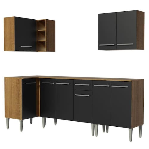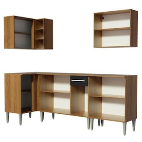 Pensada para ser uma solução completa, a Cozinha Emilly Open de Canto Reto contempla três balcões, dois armários aéreos e uma adega acoplada, todos com ótimo aproveitamento dos espaços. Assim, fica mais fácil organizar os utensílios, louças e eletros. Além disso, todos os módulos são separados, possibilitando a montagem conforme a necessidade do seu ambiente.