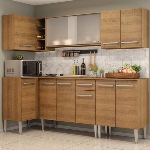 Buscando uma solução completa e com ótimo aproveitamento dos espaços? Confira a Cozinha Emilly Point de Canto Reto da Madesa. São três balcões, três armários aéreos e uma adega acoplada, perfeitos para organizar os utensílios, louças e eletros. Além disso, todos os módulos são separados, possibilitando a montagem conforme a necessidade do seu ambiente.