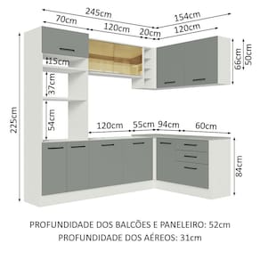 - 52 cm nos módulos inferiores e 31 cm nos aéreos