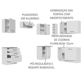 Para completar, a cozinha conta com pés reguláveis em PVC e rodapé removível em MDP de fácil encaixe, para retirar na hora de realizar a limpeza.