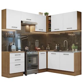 Por se tratar de uma cozinha modulada, você pode organizar os armários e balcões conforme a necessidade no seu ambiente. Além disso, o canto pode ser montado tanto para o lado esquerdo quanto para o direito.