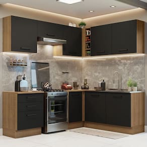 A cozinha é totalmente modulada, portanto é possível organizar os módulos conforme a necessidade do seu espaço. Outro diferencial é que o canto pode ser montado tanto para o lado esquerdo quanto para o direito.