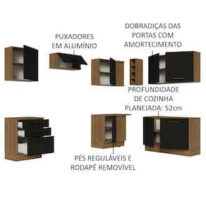 Para completar, a cozinha conta com pés reguláveis em PVC e rodapé removível em MDP de fácil encaixe, para retirar na hora de realizar a limpeza.