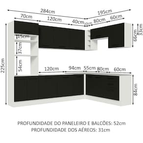 - 52 cm nos módulos inferiores e 31 cm nos aéreos