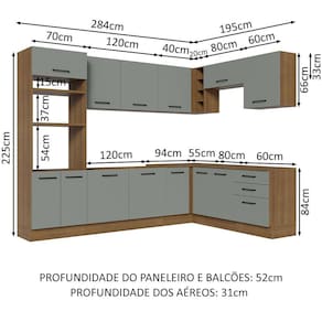 - 52 cm nos módulos inferiores e 31 cm nos aéreos
