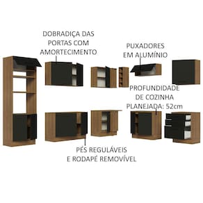 Para completar, a cozinha conta com pés reguláveis em PVC e rodapé removível em MDP de fácil encaixe, para retirar na hora de realizar a limpeza.