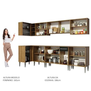 Medidas totais: 186 cm de altura x 357 cm de largura x 44 cm profundidade nos balcões e 27 cm nos aéreos.