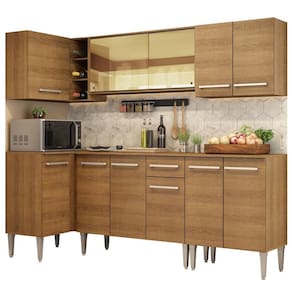 Buscando uma solução completa e com ótimo aproveitamento dos espaços? Confira a Cozinha Emilly Play de Canto Reto da Madesa. São três balcões, três armários aéreos e uma adega acoplada, perfeitos para organizar os utensílios, louças e eletros. Além disso, todos os módulos são separados, possibilitando a montagem conforme a necessidade do seu ambiente.