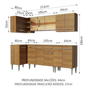 Medidas totais: 186 cm de altura x 293 cm de largura x 44 cm profundidade nos balcões e 27 cm nos aéreos.