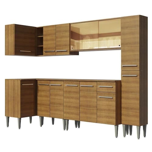 A Cozinha Emilly Wave de Canto Reto da Madesa é fabricada com itens de qualidade superior, como puxadores com detalhe em alumínio e corrediças e dobradiças metálicas resistentes. Contempla três balcões, três armários aéreos, uma adega acoplada e um paneleiro, todos com ótimo aproveitamento dos espaços. Assim, fica mais fácil organizar os utensílios, louças e eletros.