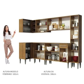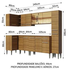 Medidas totais: 186 cm de altura x 325 cm de largura x 44 cm profundidade nos balcões e 27 cm nos aéreos e no paneleiro.