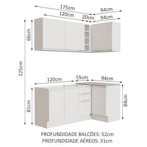 O acabamento é branco, feito em Pintura Poliéster com 7 camadas que protegem o móvel dos efeitos do álcool da água e do calor.