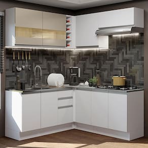Esta Cozinha de Canto da linha Glamy da Madesa tem como grandes destaques o design moderno, o acabamento de alto padrão e o amplo espaço disponível.