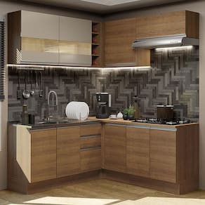 Esta Cozinha de Canto da linha Glamy da Madesa tem como grandes destaques o design moderno, o acabamento de alto padrão e o amplo espaço disponível.