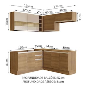 - 52 cm nos módulos inferiores e 31 cm nos aéreos