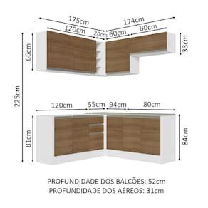 O acabamento da estrutura é branco e as portas e frentes são no padrão amadeirado Rustic. É feito em Pintura Poliéster com 7 camadas que protegem o móvel dos efeitos do álcool da água e do calor.