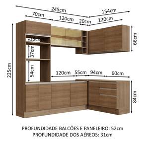 - 52 cm nos módulos inferiores e 31 cm nos aéreos