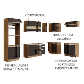 Para completar, a cozinha conta com pés reguláveis em PVC e rodapé removível em MDP de fácil encaixe, para retirar na hora de realizar a limpeza.