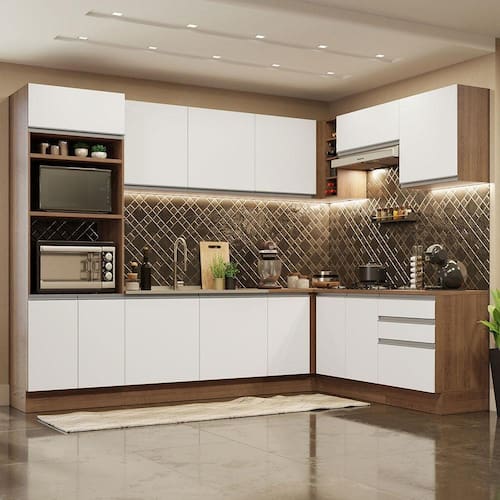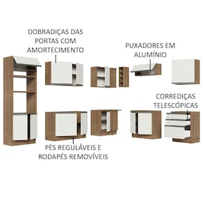 Totalmente modulada, permite organizar os armários e balcões conforme preferir no seu ambiente. Além disso, o canto pode ser montado tanto para o lado esquerdo quanto para o direito.