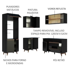 Os armários aéreos e a torre-quente precisam ser fixados na parede. Os módulos de canto devem ser montados para o lado esquerdo, assim como mostram as imagens.