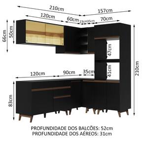 - 31 cm de profundidade nos aéreos e 52 cm nos balcões e na torre