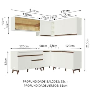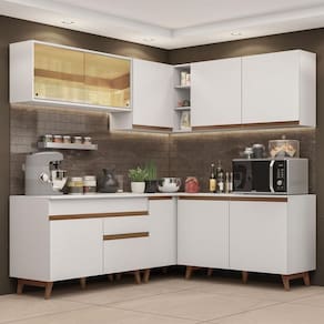 A linha de Cozinhas Reims da Madesa, é fabricada com materiais de alta qualidade, como puxadores embutidos em alumínio e dobradiças metálicas. Nesta versão contempla três balcões e três armários aéreos, todos com tampo, que pode ser removido para instalação de pia e/ou cooktop.