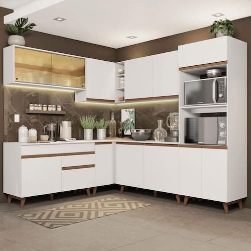 Este modelo da linha de Cozinhas Reims de Canto da Madesa é uma das opções mais completas e bonitas no mercado.