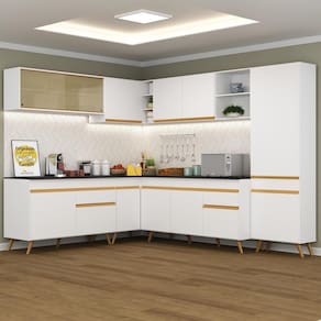 A Cozinha Completa de Canto Veneza Multimóveis MP2065 com Armário e Balcão tem um excelente custo benefício e um amplo espaço interno. Produzida em MDP com acabamento acetinado (cerca de 20% de brilho), que garante maior durabilidade e resistência, possui corrediças metálicas (mais leveza no manuseio), pés retrô em polipropileno, que deixam o ambiente mais estiloso, puxadores em ABS e tampo em MDP 15mm com pintura de alta resistência. Os módulos de canto podem ser montados dos dois lados (esquerdo ou direito), conforme a sua preferência. Esta cozinha conta, ainda, com balcão com tampo removível (compatível com pia de 120 ou 150cm). Os módulos são individuais e você pode montar da maneira que se adaptar melhor ao seu ambiente. Para deixar sua cozinha mais bonita e organizada, possui vidro reflecta e compartimento especial para utensílios mais altos.