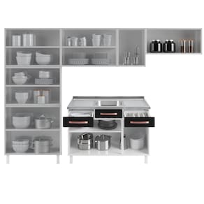 O balcão acompanha pia? Não. As imagens do anúncio são meramente ilustrativas e podem apresentar itens que não compõem o produto (como pia, eletro, panelas e decorativos).