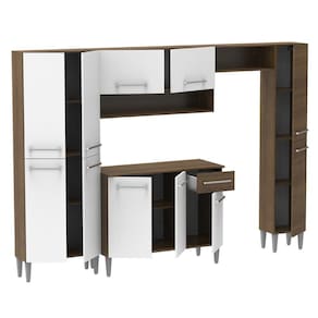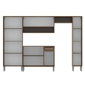 - Ela é dividida em quatro módulos independentes: paneleiro de duas portas, balcão de pia, o aéreo com duas portas e dois nichos e o paneleiro de duas portas.