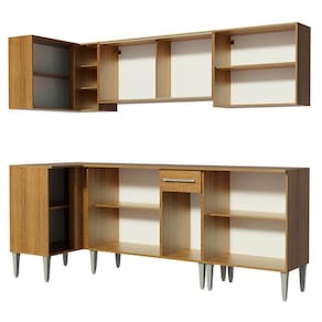 Buscando uma solução completa e com ótimo aproveitamento dos espaços? Confira a Cozinha Emilly Play de Canto Reto da Madesa. São três balcões, três armários aéreos e uma adega acoplada, perfeitos para organizar os utensílios, louças e eletros. Além disso, todos os módulos são separados, possibilitando a montagem conforme a necessidade do seu ambiente.